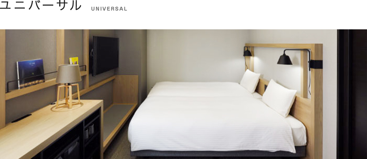 19㎡の客室に幅1,000のベッドが2台のツインルームです。車椅子でのご利用にも対応しております。3点式のユニットバスを備えております。