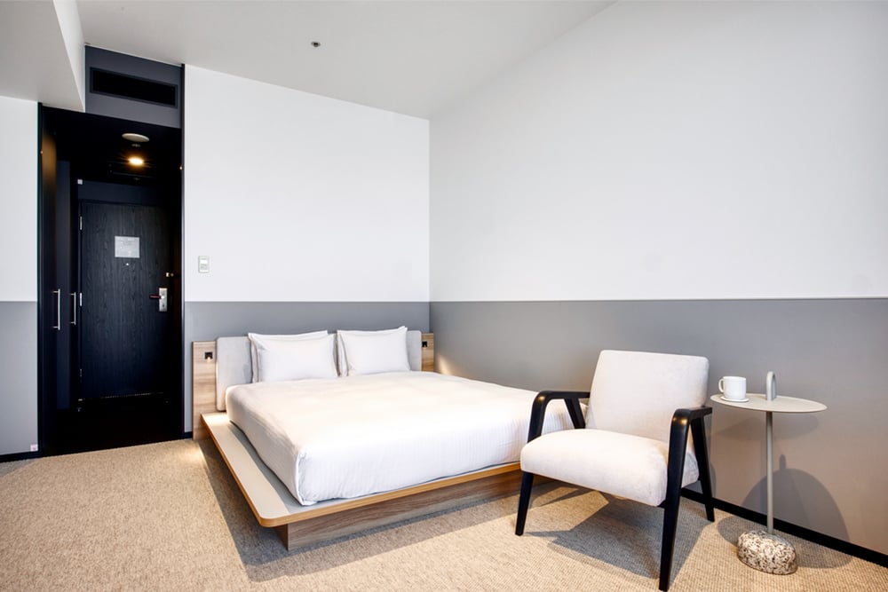 【リニューアル】グレーと白を基調とした、モダンかつ落ちつきのある客室です。